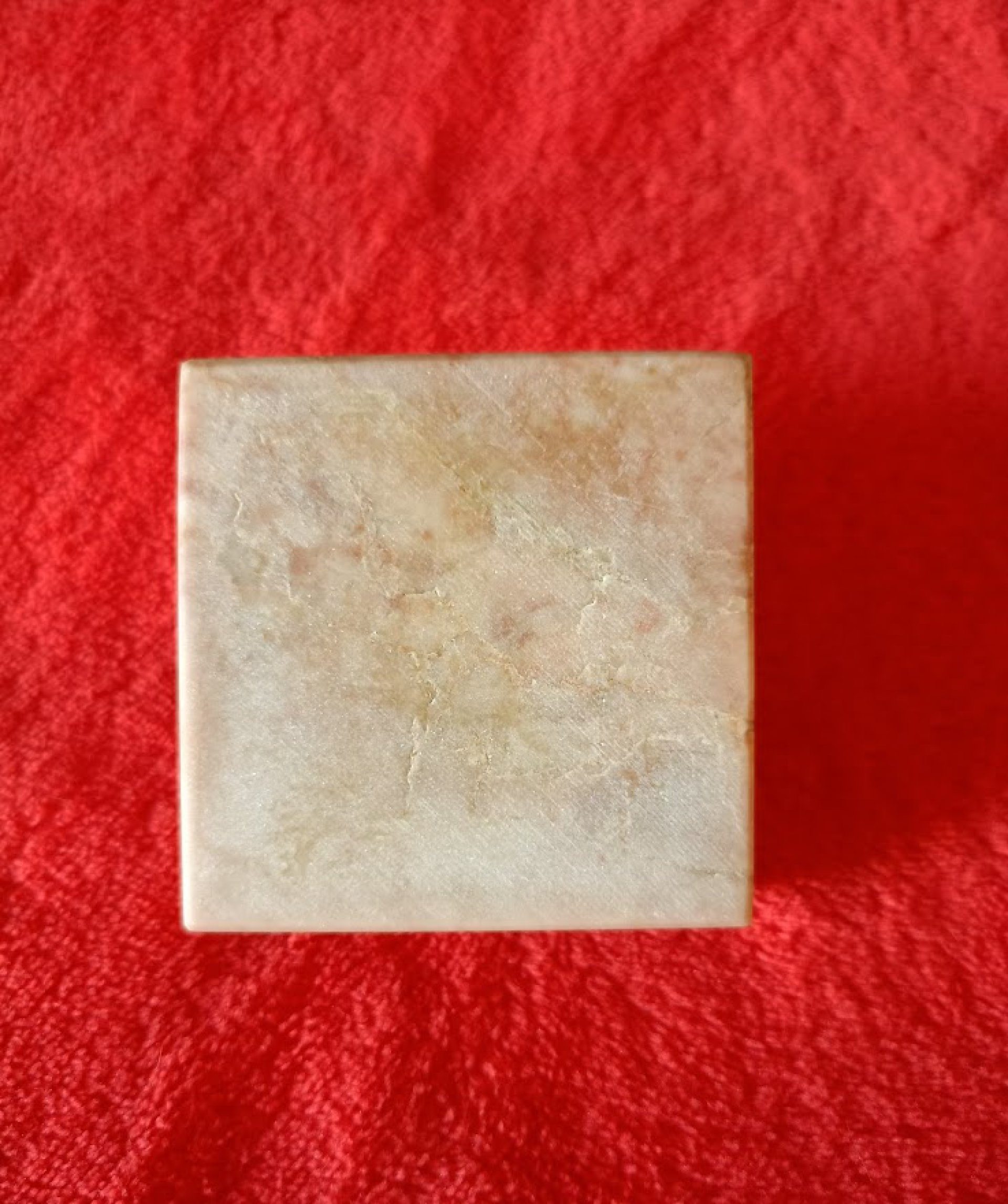 altı 57 x 57 x 20 mm ölçülerinde mermer kağıt ağırlığı.